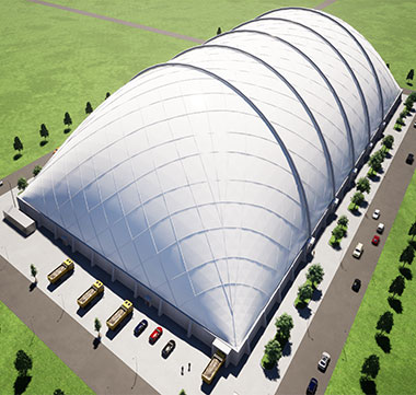 無梁無柱大跨度空間,跨度可達(dá)180米,空間使用率可達(dá)九成以上,體育、娛樂、展示等多功能需求均可應(yīng)用,在煤倉和污水處理方面也可應(yīng)用。